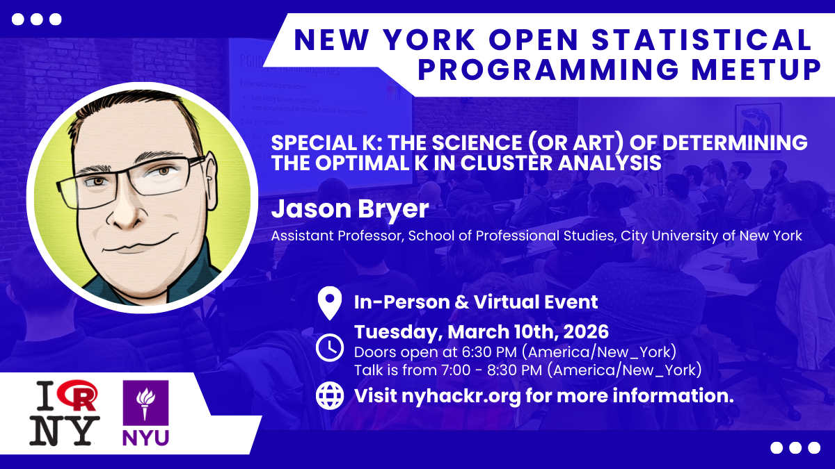 About the Talk: Cluster analysis is a statistical procedure for grouping observations using an observation-centered approach as compared to variable-centered approaches (e.g. PCA, factor analysis). As an unsupervised method true cluster membership is usually not known. Hence, determining the optimal number of clusters, or k, poses unique challenges. A review of six common metrics for determining k with several clustering methods using two data sets will be explored. An introduction to two bootstrapping fit statistics will be provided along with validation techniques for evaluating the validity and stability of the cluster results across bootstrap samples.